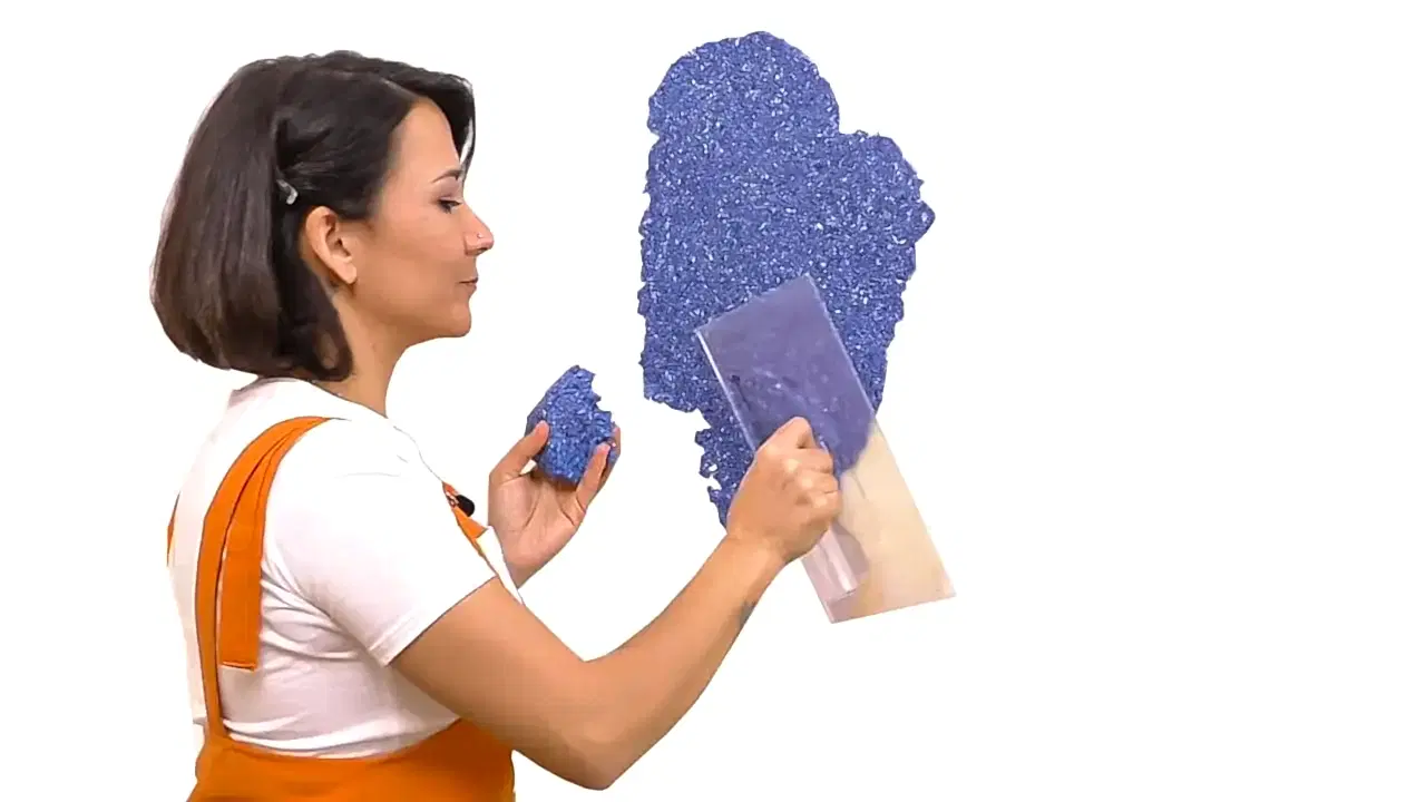 Duvarları boyamadan önce, hamur şeklindeki malzemeyi dinlendirip yoğurun ve duvarlara mala ile sürün.