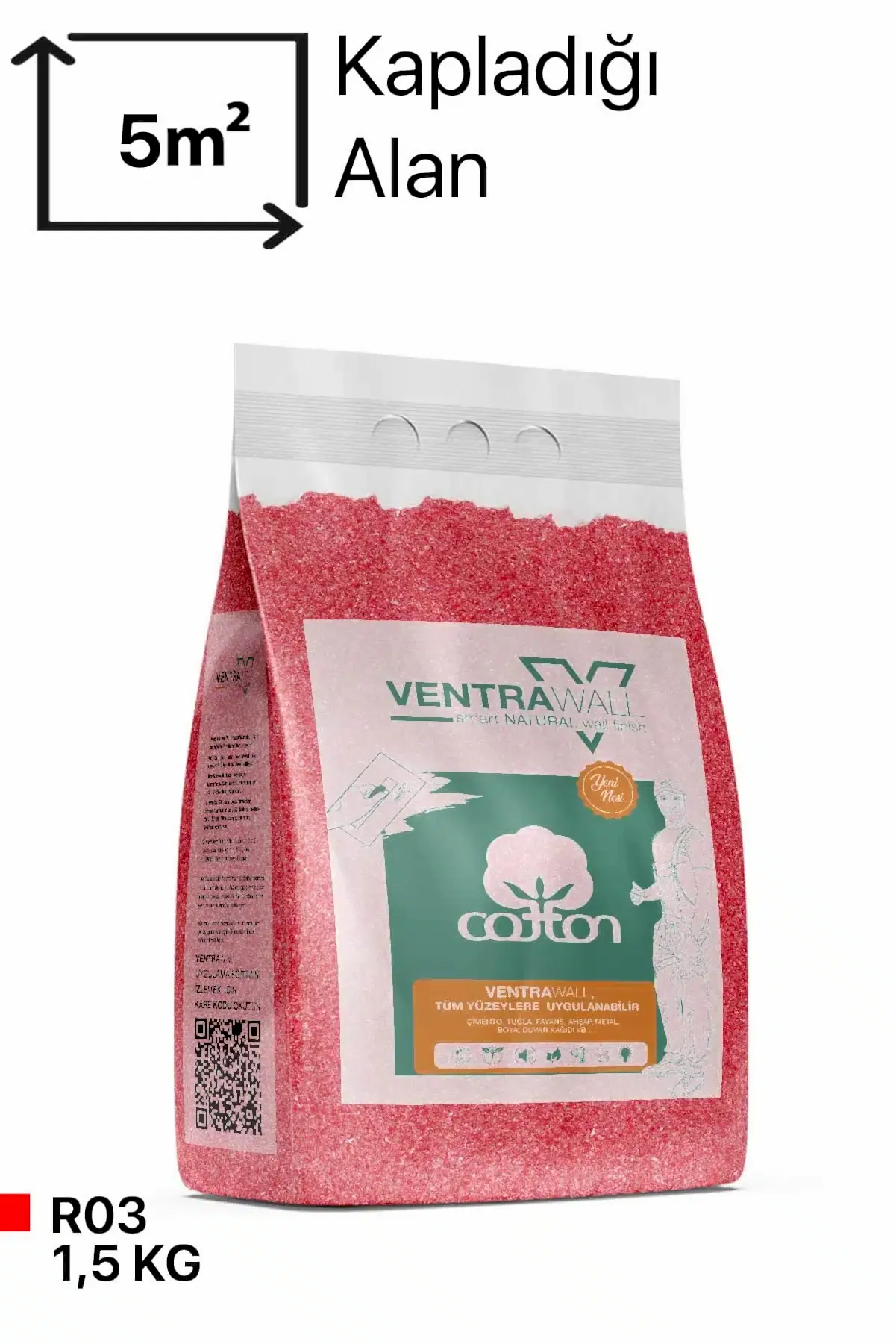 Ventrawall, 1-2 mm kalınlıkta uygulandığında genellikle kilogram başına 3-4 metrekare alan kaplar. Ancak birçok kullanıcı, bu kadar ince bir katman uygulamanın zor olduğunu ve kilogram başına yaklaşık 2,5 metrekare kapladığını belirtmektedir. Yeterli ürün miktarına sahip olduğunuzdan emin olmak için, uygulama ihtiyaçlarınıza göre gerekli miktarı satın almanızı öneririz.